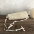 ・背中も洗える紐と持ちやすいヒノキのツマミが付いており、使用中にヘチマが動かない構造になっています。もちろん紐を強く引っ張ってもヘチマがちぎれることはありません。