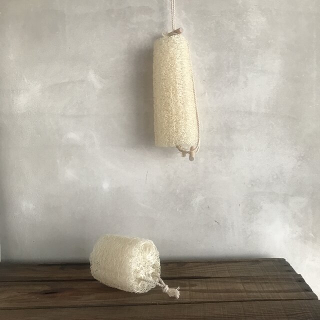 ・ヘチマ本体の長さ約20cm(背中洗い紐つき)、約10cm(引っ掛け紐つき)の2本一組。