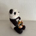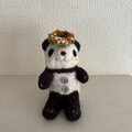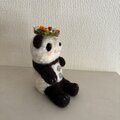 花かんむりを頭にのせたパンダちゃん。