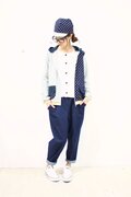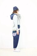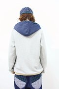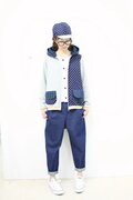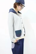 ■カラー:チェック部(グリーン)水玉部(ネイビー×白)スウェット地(グレー杢)デニムフード部(ワンウォッシュインディゴブルー)