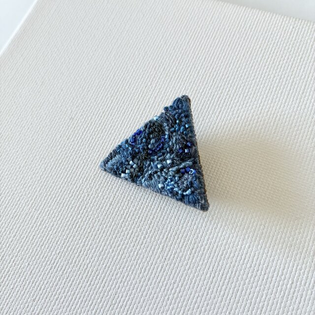 秋冬 "blue and blue" 静かな青いちいさな三角刺繍ブローチ