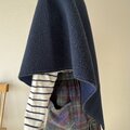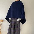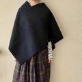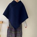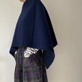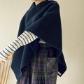 秋冬に大活躍の、ネイビーのシンプルでありながら高級感漂うデザインのウールボアポンチョです。