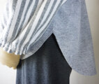 いつも感心するのは、どの作品もデザインが可愛く着こごち満点であり、襟ぐりの締め付け感は全くないのは言うまでもなく、襟まわりの開きの具合の可愛さ、上品さのバランスが絶妙に素晴らしいところです。仕立てに技ありですね!