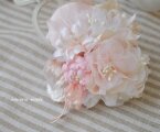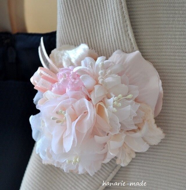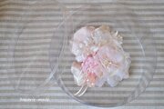 ホワイトやピンクの愛らしい花をあつめて コサージュにしました