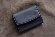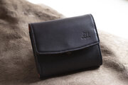 お札も持ち変えずに収納でき、利き手問わずの二つ折り財布。