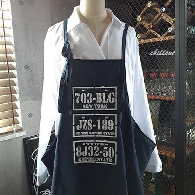 アメリカンなデザインがお好きな方にお勧めのネイビーエプロンです。