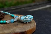 海のような美しいブルーのラリマーを、シルバーのワイヤーで巻きました。情緒のバランスを取り、安らぎを与え、ストレスを軽減する癒しの石です。