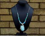 お世話になっております。 ご連絡が遅くなってしまい申し訳ありませんでした。10日に無事受け取りました。ンズリモヨのネックレス、画像で見る以上に素敵で、可愛いらしいネックレスですね。瞑想にも挑戦してみたいと思います。ターコイズのブレスも魔除けとして大切に使わせていただきます。 いつも、素敵な作品をありがとうございます。 また、よろしくお願いいたします。