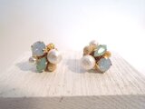 春らしいパステルカラーのスワロフスキーとホワイトのコットンパールを合わせました。