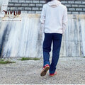 ViV LiBでは、岡山県井原市の老舗デニム生地メーカーが誇るこだわりのセルビッジデニムを使用し、上質でありながらシンプルで長く愛されるものづくりを大切にしています。岡山のデニム縫製工場で培った技術を活かし、生地工場にも直接足を運び、厳選したデニム生地をを選んでいます。妥協のない縫製で、心を込めて仕立て上げたデニムアイテムを日々制作しております。