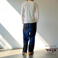 ViV LiBでは、岡山県井原市の老舗デニム生地メーカーが誇るこだわりのセルビッジデニムを使用し、上質でありながらシンプルで長く愛されるものづくりを大切にしています。岡山のデニム縫製工場で培った技術を活かし、生地工場にも直接足を運び、厳選したデニム生地をを選んでいます。妥協のない縫製で、心を込めて仕立て上げたデニムアイテムを日々制作しております。