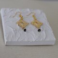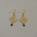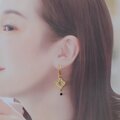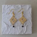 ゴールドスクエアの透かし模様レースに、ブラックのクリスタルビーズのエスニック・ピアスです。