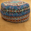イギリス最北の島々シェットランド諸島の羊たちの軽くて暖かい毛糸(ジェミーソンズのシェットランドヤーン)で編んだフェアアイル模様の帽子です。