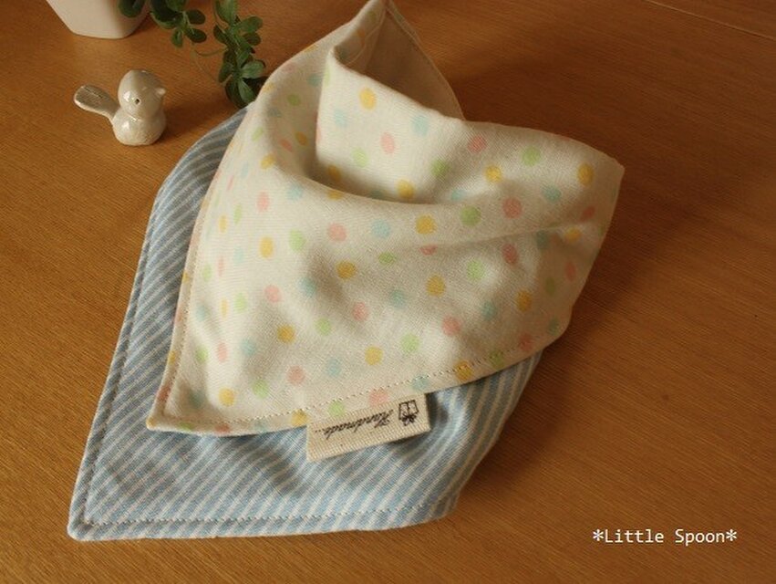 ブルーのストライプのダブルガーゼの、ハンカチスタイになります。