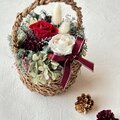 花材・・・バラ、アジサイ、カスミソウ、ヒムロスギ、ラグラス (プリザーブドフラワー)