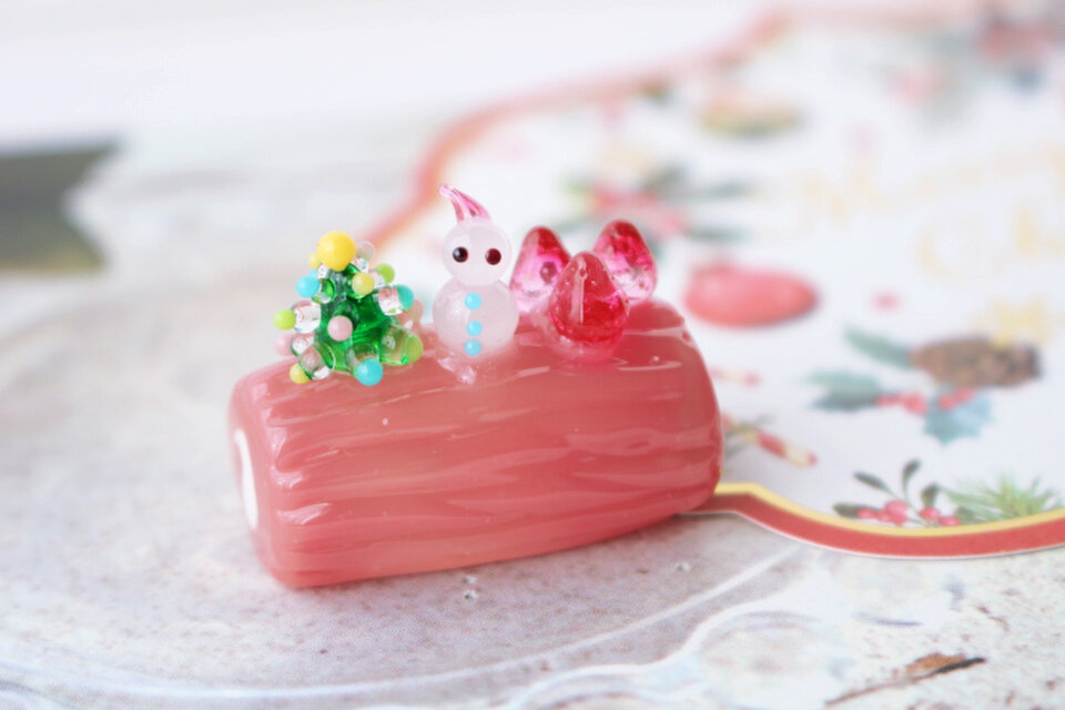 バーナーワークの技法で制作した、とっても小さなガラスのブッシュドノエルです。