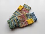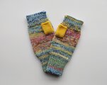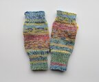 可愛らしい模様が出る段染め糸にメリノウールの単色糸を引き揃えて編んだハンドウォーマーです。