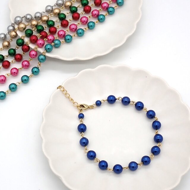 華やかな色合いや落ち着いた色合いのカラーパールのブレスレットです。