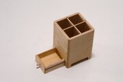 容量は結構大きめで、ペン立てやリモコン立てにも活用できます(その際は仕切り板外して使用)。