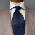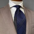 【受注製作】ネイビー チェック バイカラー ネクタイ プレゼント ギフト【別途】名入れ メッセージ イニシャル 刺繍