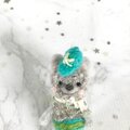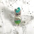 グレー猫のイニシャルKキャップを被ったブローチになります。