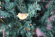 革で作ったマヒワのオーナメントです。