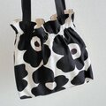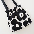 大胆にあしらわれた大きめの花柄が印象的な巾着風ショルダーバッグです。