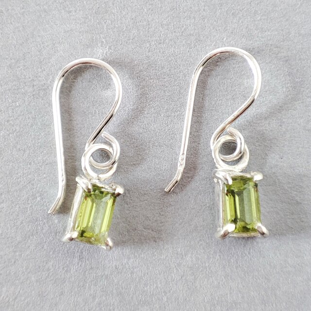 【1点もの】ペリドット/緑/グリーン/8月誕生石/フックピアス/小ぶり/四角/シンプル/ピアス
