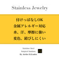 サージカルステンレスは、医療器具にも使用される高品質なステンレス素材です。そのため、金属アレルギーのリスクが低く、耐腐食性に優れていることから、汗や水に強く、長期間ご愛用いただけます。日常的な使用においても美しい状態を保ちやすく、熱や摩擦に強い点が特長です。