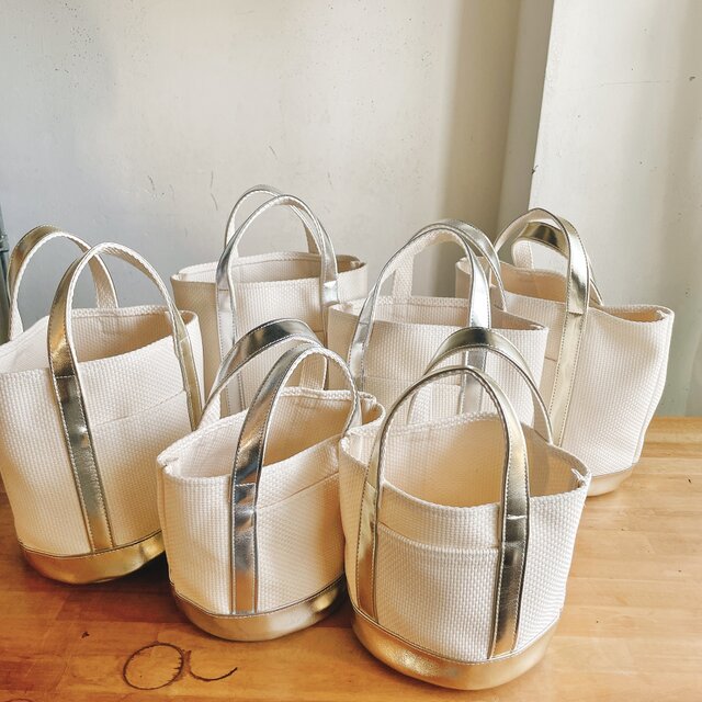 刺し子織りとよばれる綿帆布とシルバーを掛け合わせた大人カラーの帆布トートです。