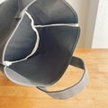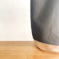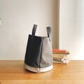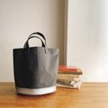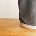 しっかりした帆布で、型崩れしにくいです。自立するコロンとしたかわいいいでたちで、置いておくだけでも◎