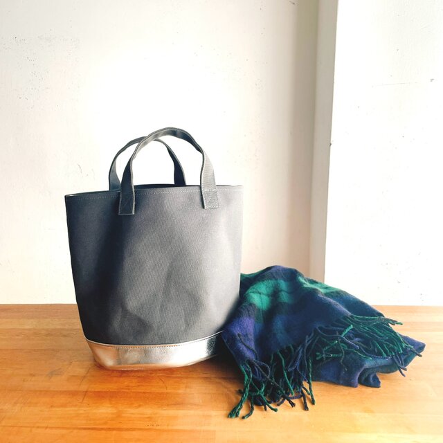 8号のダークグレーの帆布にシルバーを合わせて、女子っぽくなりすぎず、カジュアル一本でもないメンズライクな仕上がりに♪