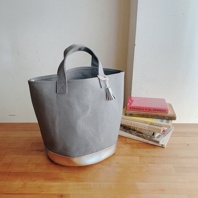 8号のクールグレーの帆布にメタリックシルバーを合わせて、女子っぽくなりすぎず、カジュアル一本でもないメンズライクな仕上がりに♪