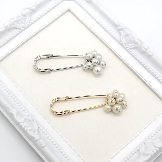 色々な大きさのパールがコロコロ揺れる大人可愛いパールブローチです。