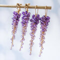 【ピアス/イヤリング】「息を呑む絶景」藤の花 アメジスト 天然石 誕生石 14kgf 紫 パープル じゃらじゃら ロング