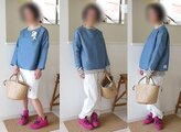 また、デニムですが色落ち感のないサックスカラーなので、上品にも着れますし、