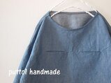 コットンのサックスカラーの薄手のデニムで作った、ドロップショルダーがかわいい