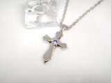 当店オリジナルブランドである【凜ri-n】の人気アイテム、クロスネックレスです。中央にタンザナイトを入れて上品に仕上げました。カジュアルなデザインも石を入れることにより、大人っぽく着けられるようになります。お誕生日の贈り物にも人気です。