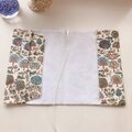 イチゴや木の実の中に可愛いフクロウ、リス、狐、ウサギさん等がいる可愛いデザインです。