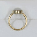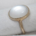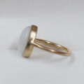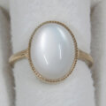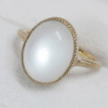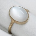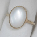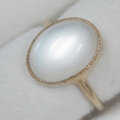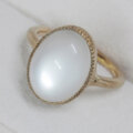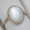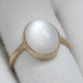 ホワイトの幻想的な色合いのシラーが綺麗なムーンストーンの指輪です。このムーンストーンはシラーが大きく、ルースを傾けると形を変えながら表面全体を素早く移動します。カボションカットの表面の光沢感も綺麗なルースです。
