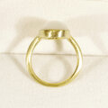写真は、ムーンストーンのシラーが白く滲んで写ってしまわない様に、明るさを抑えてあります。枠の色合いも暗めに写っていますが、明るい光の元では17枚目の写真の様に明るいゴールド色になります。