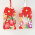 素敵なお守り袋が2つ届きました。 絞りの生地の色合いと大輪の花がとても華やかでキュートです。 白梅のものは、奥ゆかしさと気品を感じました。 どちらも大変気に入りました。大切に使わせていただきます♪