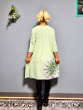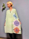 タイダイ染め チュニック ワンピース 薄萌葱色 (うすもえぎいろ)に3連の可憐な花 HD22-97