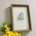 本日確かに受け取りました。 今まで数年掛けていたミニリースを外し、壁に掛けてみました。 フレームのグリーンのガラスと葉っぱが白い壁によく映えて、愛らしく清々しい印象です。 丁寧な可愛らしい梱包でお送り下さり、ありがとうございました。 とてもうれしかったです。
