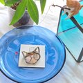 猫とのバランスにフレームの太さ、大きさ、メガネをかける位置、一つ一つこだわって作りました