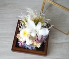 プリザーブドフラワー デンファレ マム アジサイ モスなど。