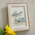 本日確かに受け取りました。 今まで数年掛けていたミニリースを外し、壁に掛けてみました。 フレームのグリーンのガラスと葉っぱが白い壁によく映えて、愛らしく清々しい印象です。 丁寧な可愛らしい梱包でお送り下さり、ありがとうございました。 とてもうれしかったです。