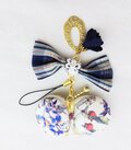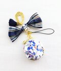 ネイビーの花タッセルとゴールドチャーム付き