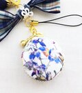 リバティのワイルドフラワー柄、綿タナローン生地のマカロンポーチストラップです。