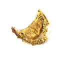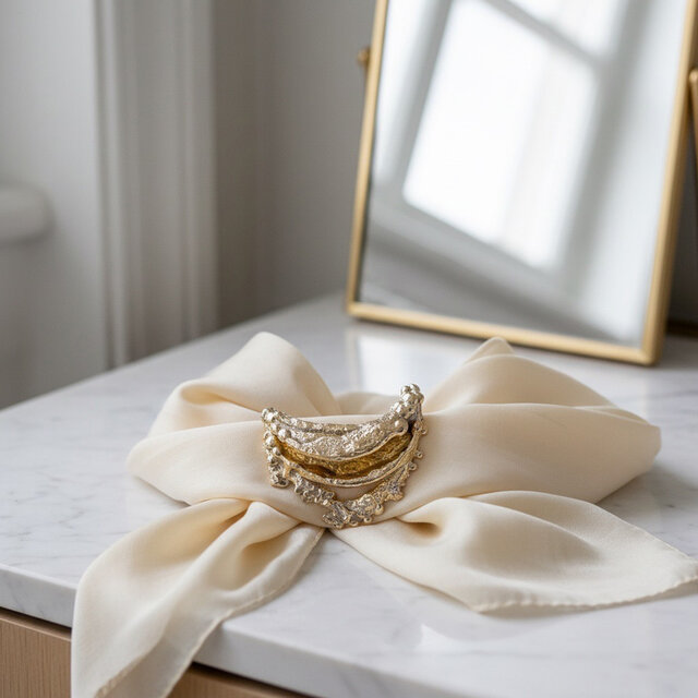自然の質感とアンティーク調の輝きを融合させた「オーガニックムーンブローチ」。月のような柔らかな曲線美と独特のテクスチャーが、手仕事の温かみを感じさせる逸品です。洗練された存在感が、大人の女性の装いを格上げします。